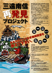 愛知県東部の東三河地域、静岡県西部の遠州地域、長野県南部の南信州地域からなる三遠南信地域において、人やモノ、情報の循環による地産地消の流れを起こすため、三遠南信地域内の多種多様で豊富な地域資源を発掘し、その地域資源の魅力を地域全体へ発信する事業を実施します。そこで、三遠南信地域の魅力ある地域資源を募集いたしますので、皆様がお持ちの「とっておきの情報」をご提供ください。