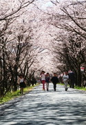 向天方地区の太田川堤防に植えられた2㎞千本のソメイヨシノの桜トンネル。