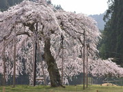 幹周り2.41m、根周り2.59m、樹高約7m。別称イトザクラ。姿、形とも美しいです。