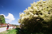 静岡県天然記念物。日本では湖西市を含む3ヶ所のみで自生しています。リボンのような細長い白い花が、木を覆うようにして咲く珍しい木です。