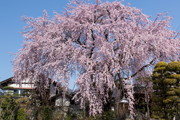 黄梅院本堂脇にあり、深紅の花を咲かせる樹高16m樹齢400年の枝垂れ桜