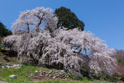 旧遠州街道を覆うように枝が伸び、南信州一樹形が美しいともいわれる樹齢350年の桜