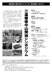 一般社団法人奥三河ビジョンフォーラム設立記念シンポジウムといたしまして、農産物や森林、観光資源などの多様な地域資源を有する山間地のこれからの活性化について考える「三遠南信中山間地シンポジウム」が開催されます。- 開催日時