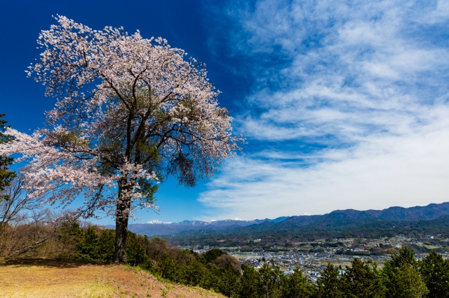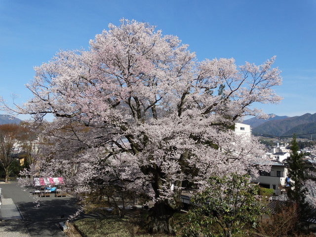 飯田城二の丸跡、現飯田美術博物館に立つ高さ20m、幹回り6.4m、樹齢450年以上の桜
