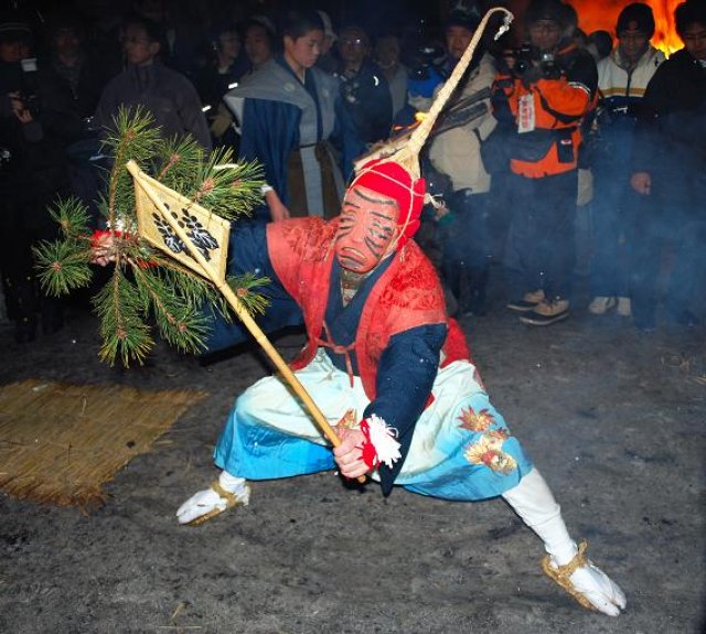 能や狂言などの伝統芸能の原点ともいわれ、14日深夜から15日明け方にかけて、田楽...