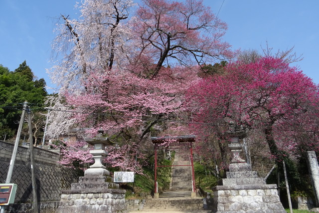 飯沼諏訪神社の階段両脇に植えられており、開花時には桜のトンネルとなる。
